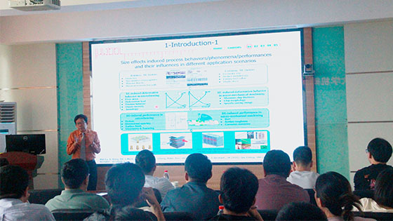 傅铭旺教授对学院的信任表达了感谢,同时结合自身的研究经历和今后的工作想法与现场师生作了交流。聘任仪式结束后,傅铭旺教授为在场师生讲授了智造名家讲坛第五讲——“多尺度制造中的尺寸效应”。